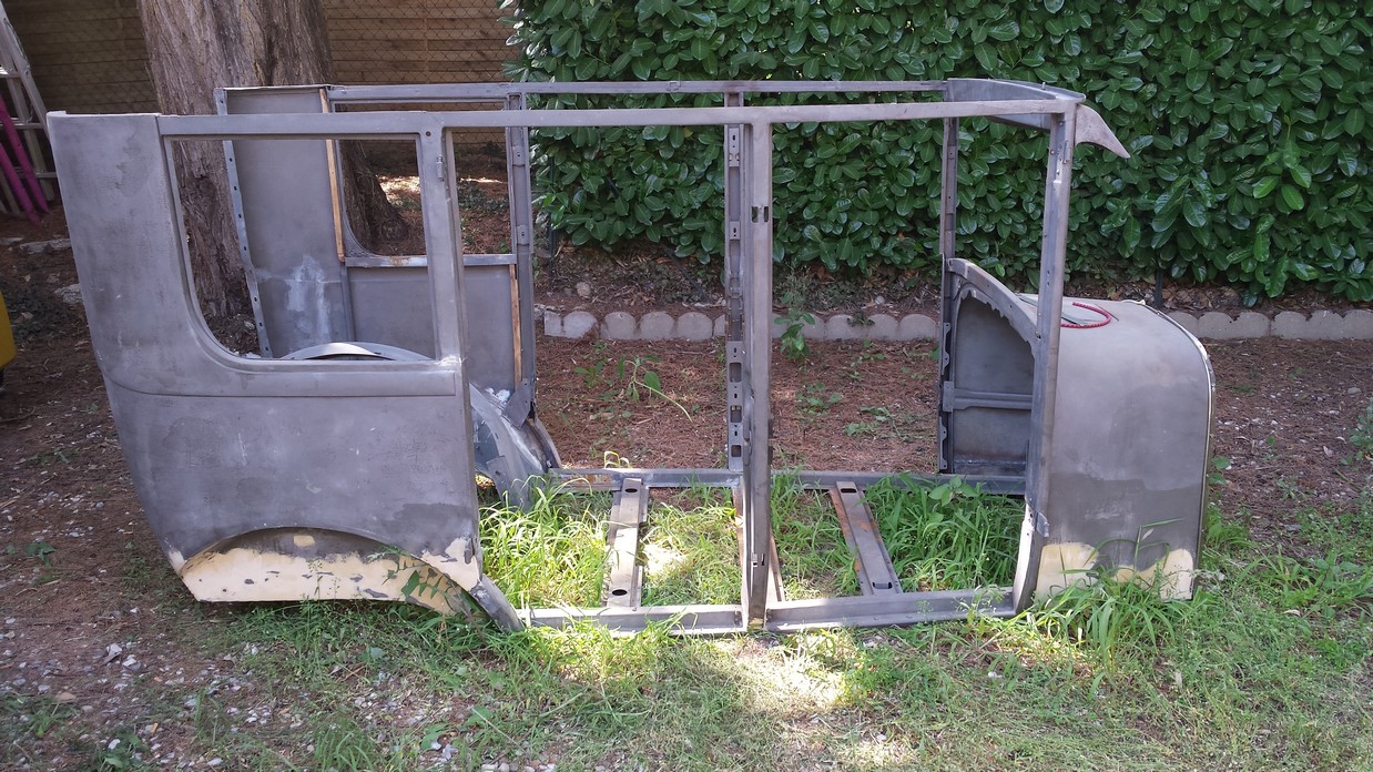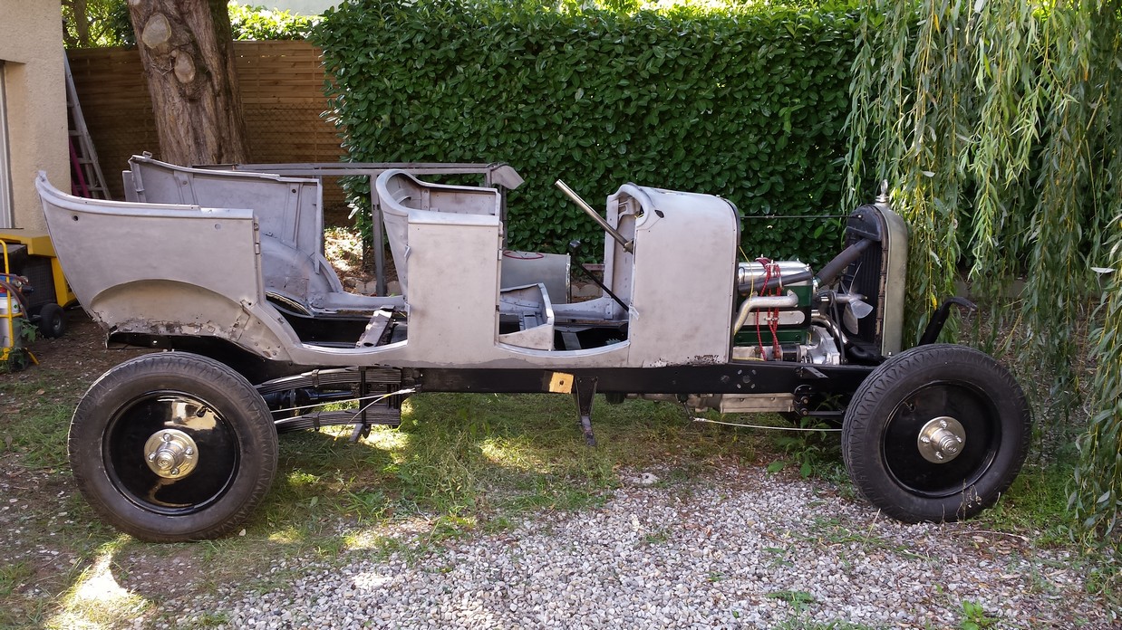 Au final la caisse est sablée, traitée au primaire phosphatant, et enfin mise sur son châssis définitif.