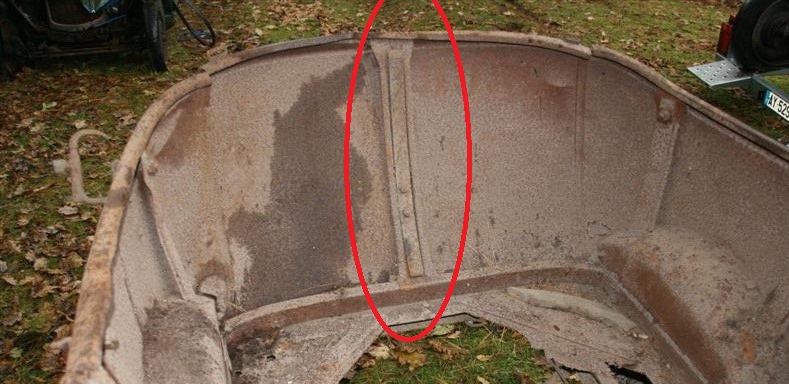 Voir sur les photos ci-dessous le renfort entouré. Si l'un d'entre vous peut mesurer précisément cette pièce sur une B10, B12 ou B14 torpédo tourisme ce serait super sympa.