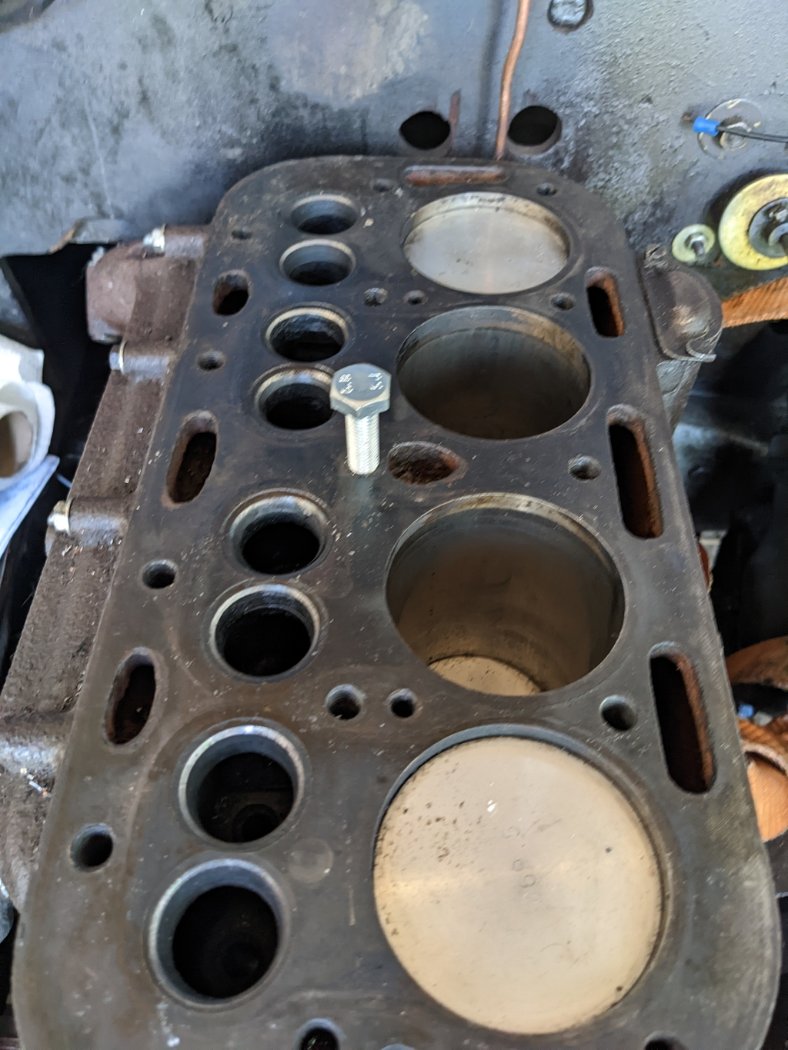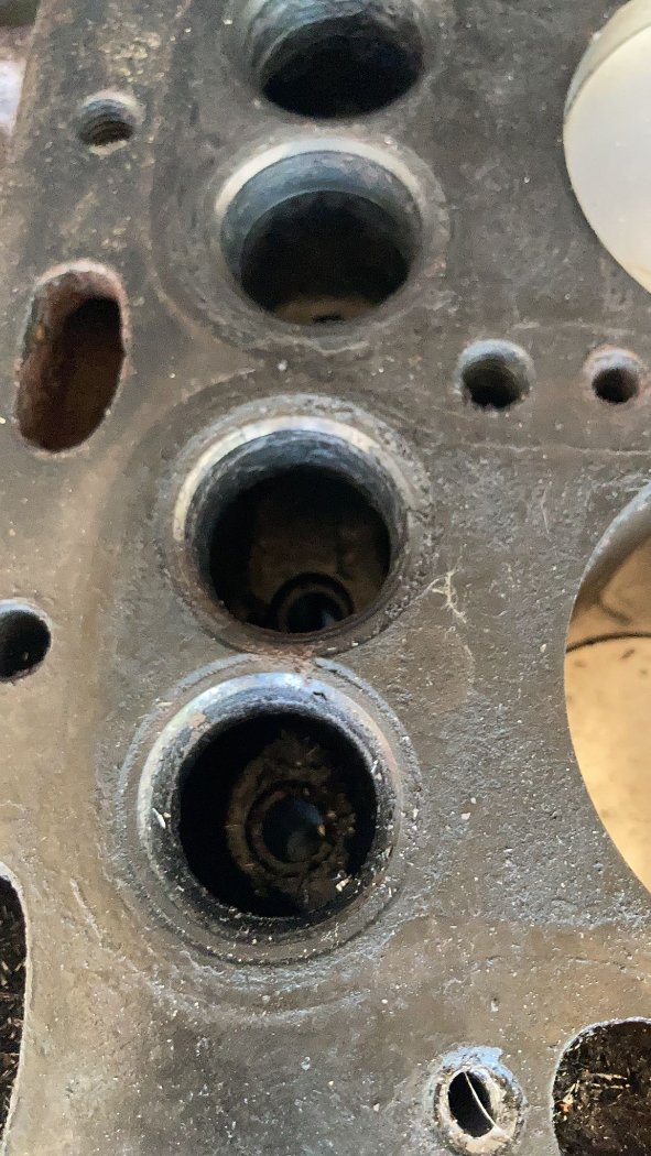 Un goujon avait cassé dans le bloc, on a réussi à l'avoir en perçant progressivement avec un guide dans la culasse