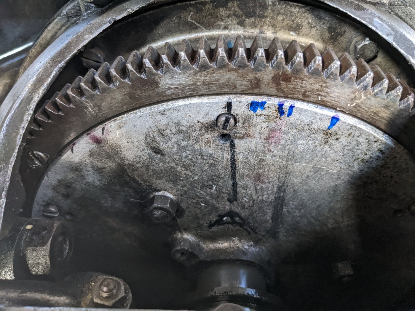 Mon père était confiant qu'il n'y avait pas de repères de calage sur les pignons, il se sent un peu bête maintenant...