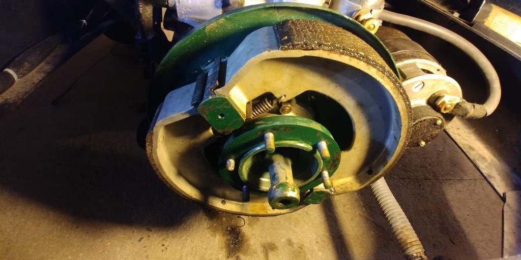 Premières constatations, le tambour de frein est plein d'huile il faudra comprendre pourquoi car il y a un roulement étanche au niveau de la boîte.