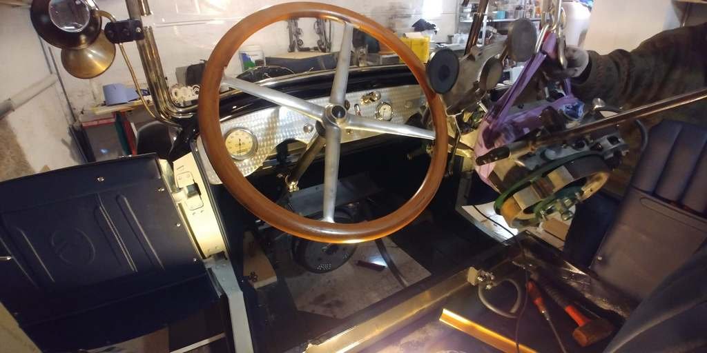Mon ami mécanicien Maurice réalise en ce moment le nouvel arbre de transmission, l'ancien étant vraiment en mauvais état. En attendant la voiture est sur chandelles.