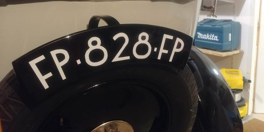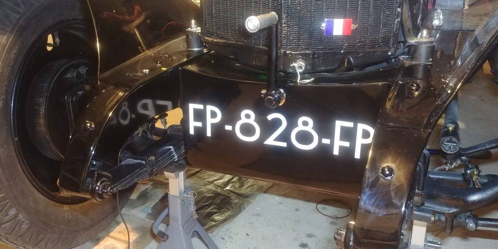 J'ai composé la plaque, vectorisé l'image, je l'ai fait imprimer en pochoir que j'ai appliqué à la place de l'ancienne immatriculation qui était en adhésif.
