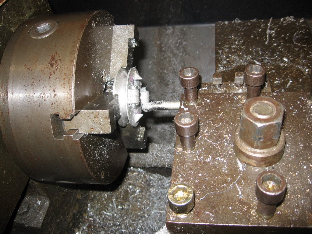 Maurice me la rectifie au tour pour que le ressort tourne parfaitement.
