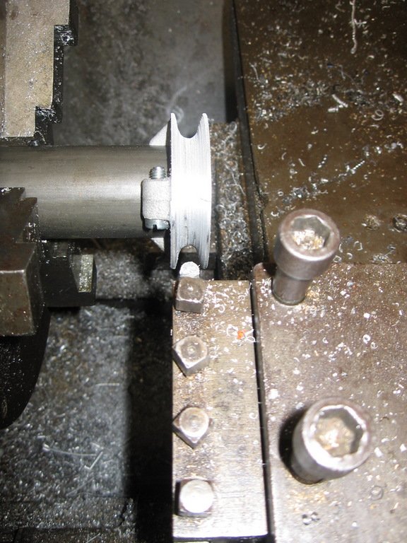 Celle d'origine étant cassée, je récupère une autre poulie de mon stock.