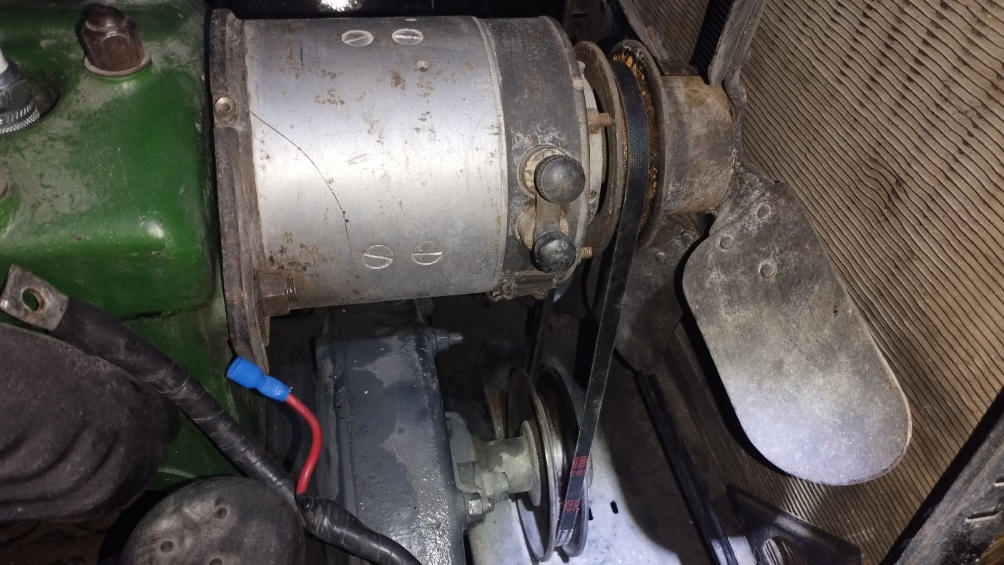 La dynamo ne se connecte pas directement à la batterie il faut passer par un conjoncteur disjoncteur sinon elle tourne comme un moteur électrique et grille....