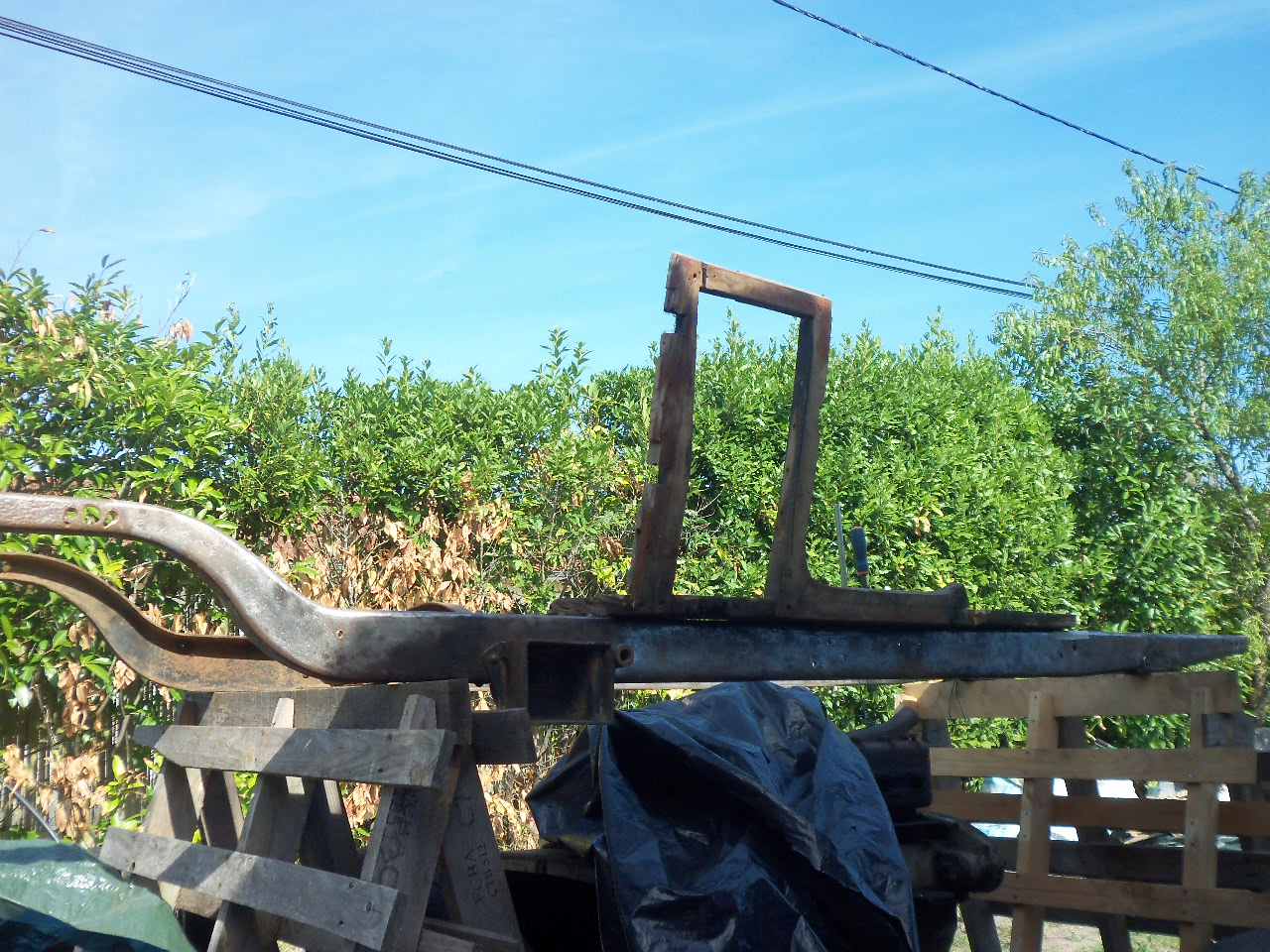 Petit essai pour voir comment se place la structure en bois sur le chassis. Enfin quand je dis structure...je parle des trois morceaux qu'il me reste. Il va falloir extrapoler pour le reste. Et même peut-être Hyperpoler.
