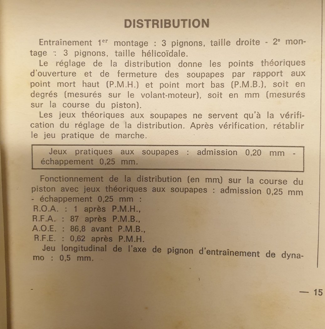 Note que les jeux doivent être à 0,25 toutes soupapes pour les réglages, remis ensuite à 0,20 et 0,25.