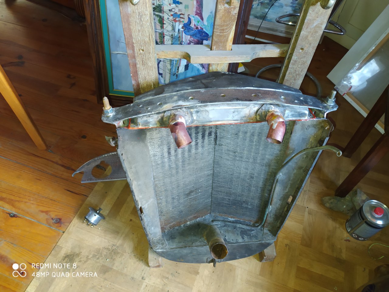 j' aussi fini mes coudes inférieurs du radiateur et collé celuici au silicone haute temprature(260°) reste à faire celui du haut