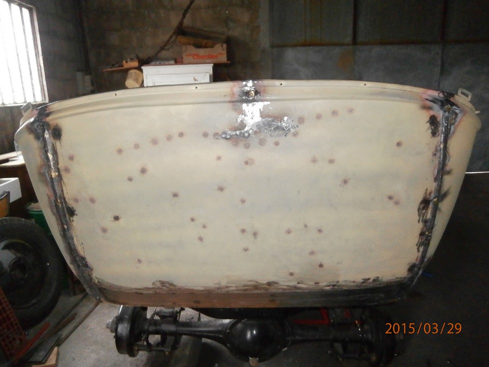 La reconstruction se termine petit à petit par la soudure du fond situé sous la banquette arrière.