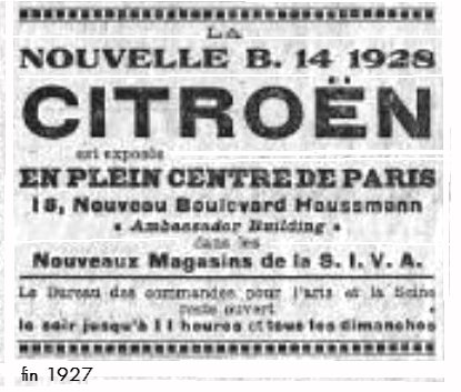 La nouvelle B14, fin 1927, à voir chez SIVA, Paris