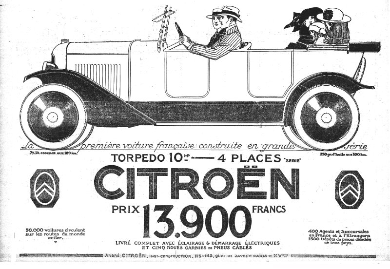 Trouvées là: http://gallica.bnf.fr/html/editorial/presse-revues . Dans les années 20 Citroën avait de nombreuses publicités dans les journaux .