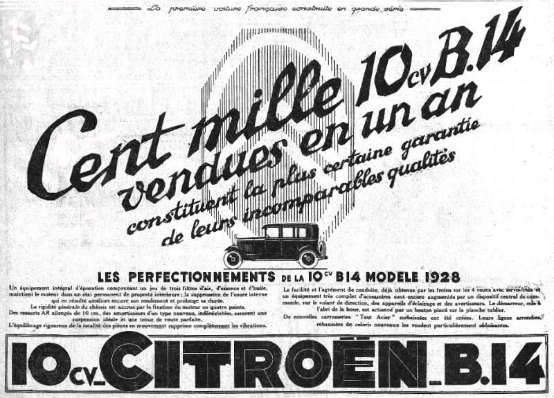 une publicité d'octobre 1927 pour la 10cv B14