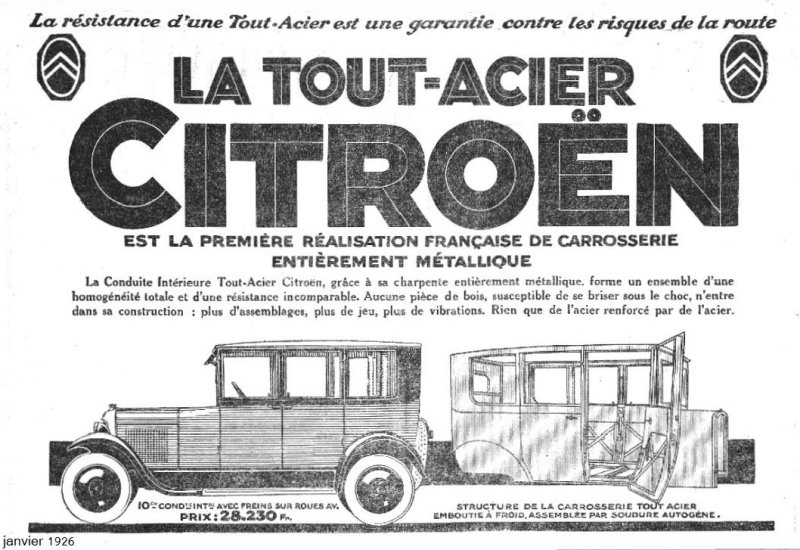 publicité de 1926, la limousine à carrosserie tout acier
