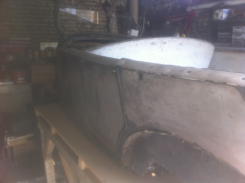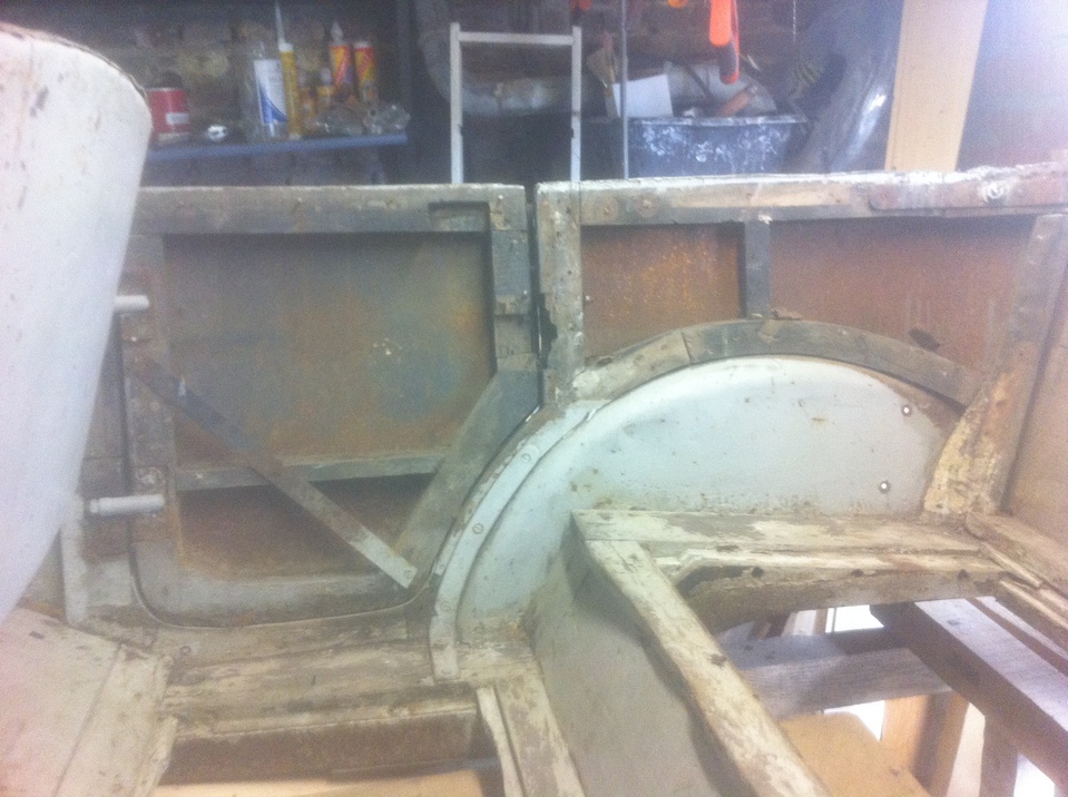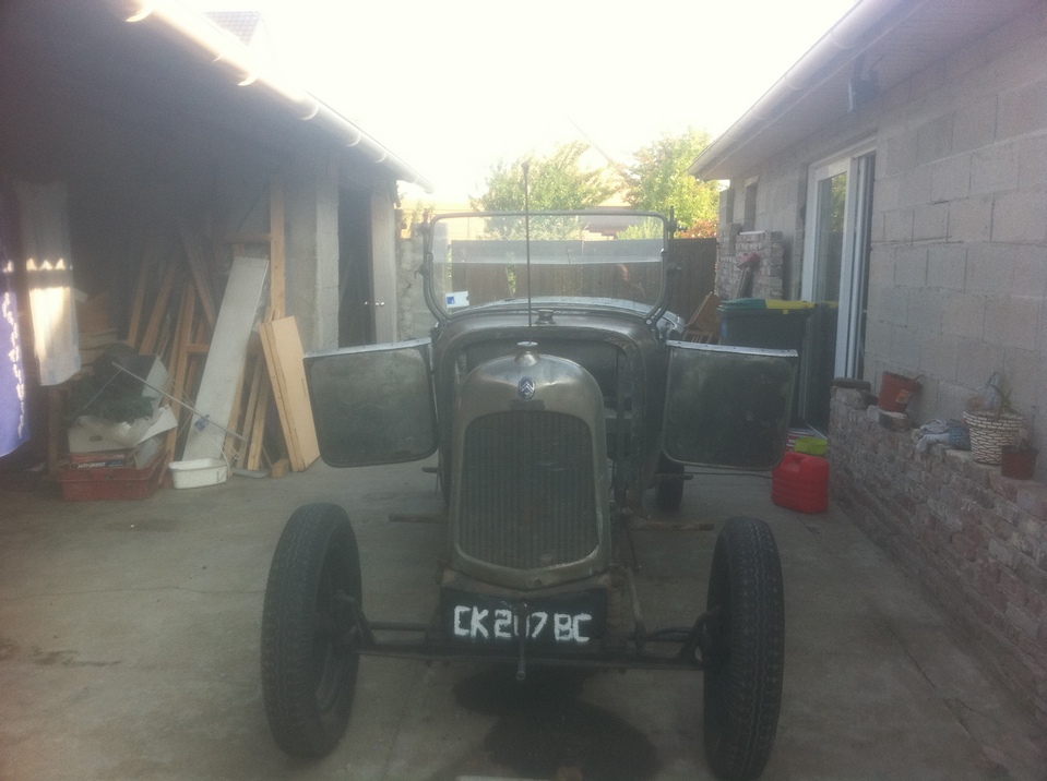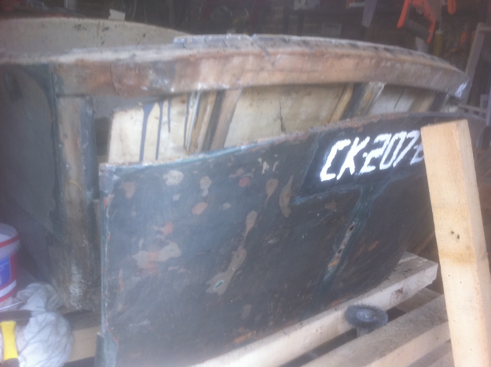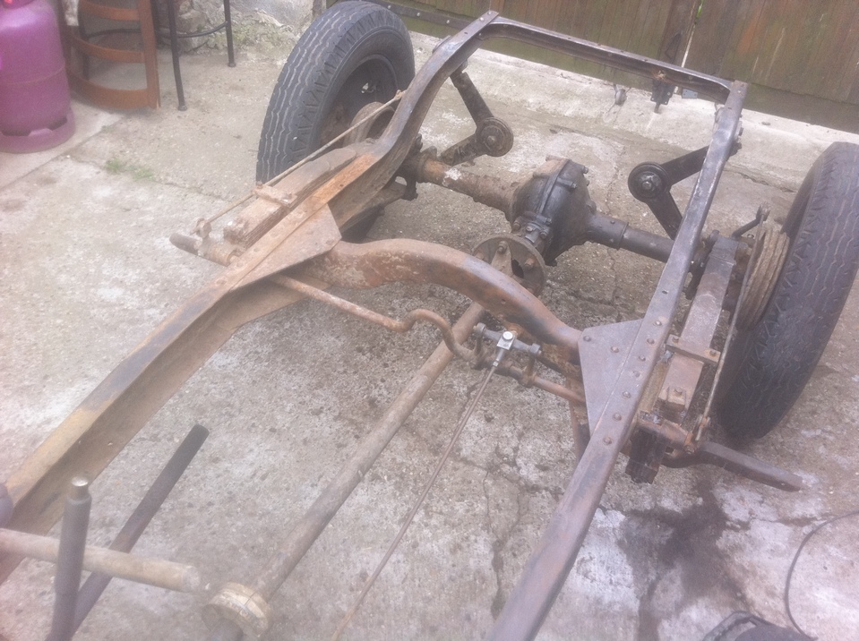en fait le châssis est en cours de remise en état également , il est dehors bien à l'abri sous une housse spécial et je travail dessus lorsque le temps le permet( et dans le ch'nord c'est pas tous les jours !) et quand il pleut (souvent!) je travaille à l'intérieur sur la partie caisse; le moteur j'y ai passé tous l'été dernier , il est maintenant tournant et au point il nécessitera surtout un bon nettoyage par contre j'ai la boite de vitesse à ouvrir; pour ce qui est du décapage des tôles j'avais déjà décapé l'extérieur sur l'auto montée au disque abrasif monté sur meuleuse ( voir photos ) il me reste maintenant les bords que je n'avait pu faire sans démonter et l'intérieur qui est juste rouillé superficiellement et je pense qu'avec une brosse métallique ou en composite montée sur perceuse cela devrait aller j'ai déjà fait l'essais lors du démontage des tôles pour repérer les clous , voilà petit à petit cela avance !