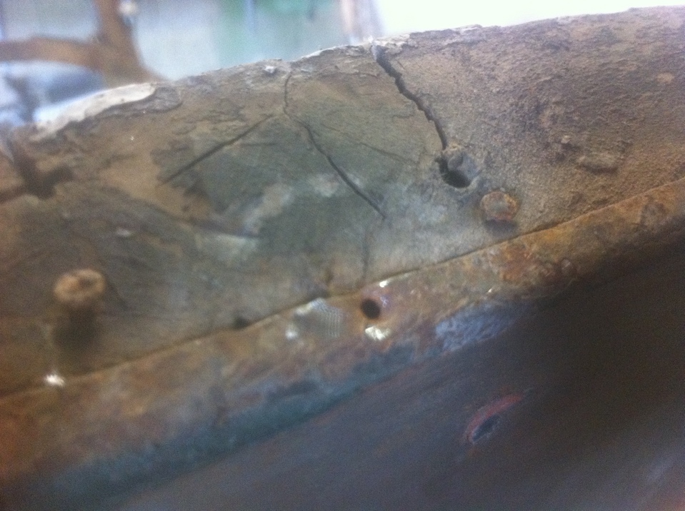 il était temps de le faire car l'humidité restait entre la tole et le bois et tout aurait finit par pourrir, de plus quelques modifications ou rajout avait été effectués au fil du temps et c'est à ces endroit que la caisse est le plus abimée , enfin pour le moment je n'ai rien découvert d'insurmontable le bois à travaillé certes mais il est saint dans l'ensemble ...