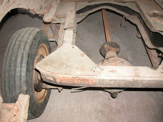 Je pense que l'arrière du chassis est sérieusement bricolé. Une partie des longerons, ainsi que la traverse arrière cintrée semble coupée et manquante. A voir...