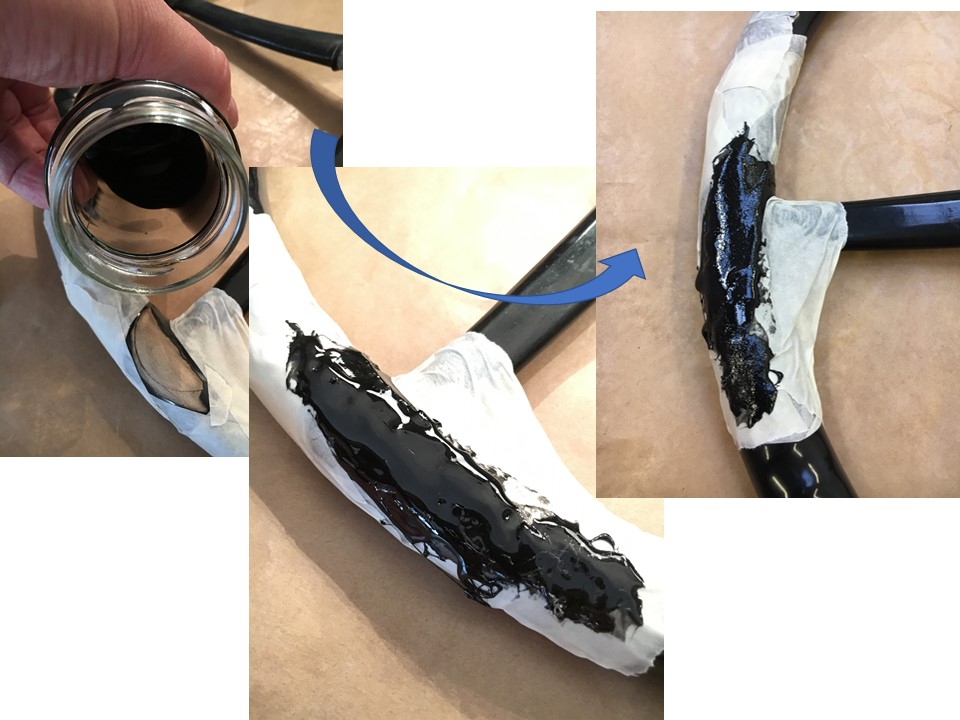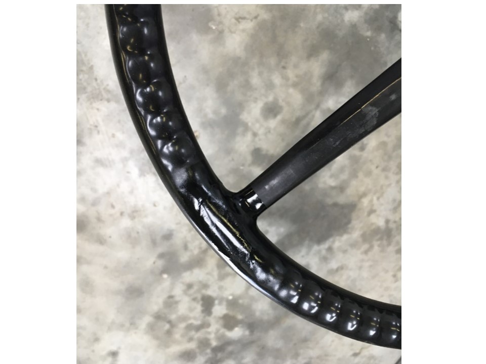 Mon volant bois est recouvert d'un revêtement noir, sorte de plastique moulé ? Mais voilà, le temps a fait son effet et au niveau de l'assemblage des branches, il revêtement est craquelé.