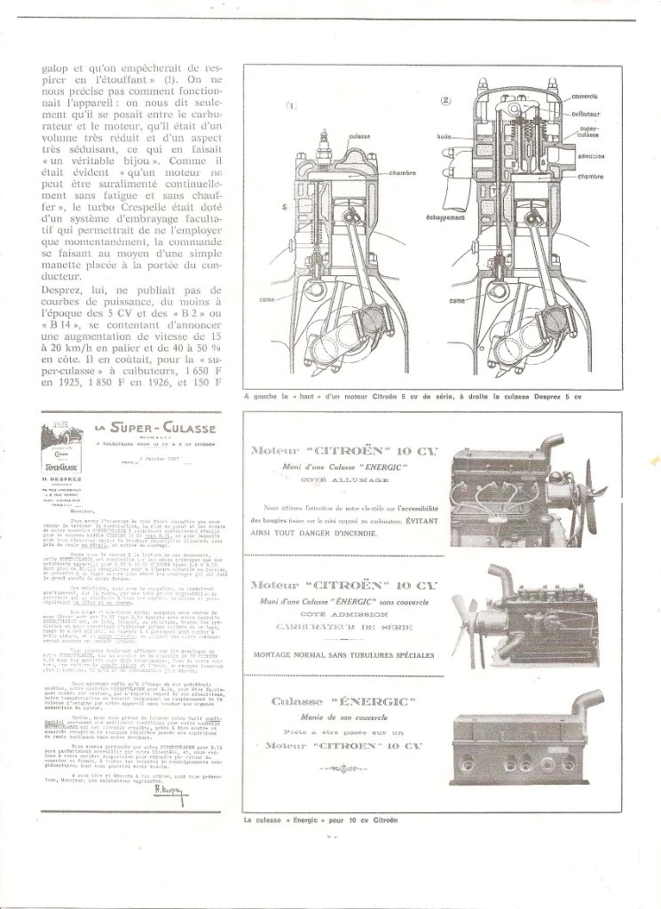 Qui aurait une documentation technique sur le " turbo - suralimenteur " Crespelle, proposé en 1926 / 1927 pour améliorer les performances des 10 HP ? Une illustration figure dans le bouquin de Bernard Laurent.