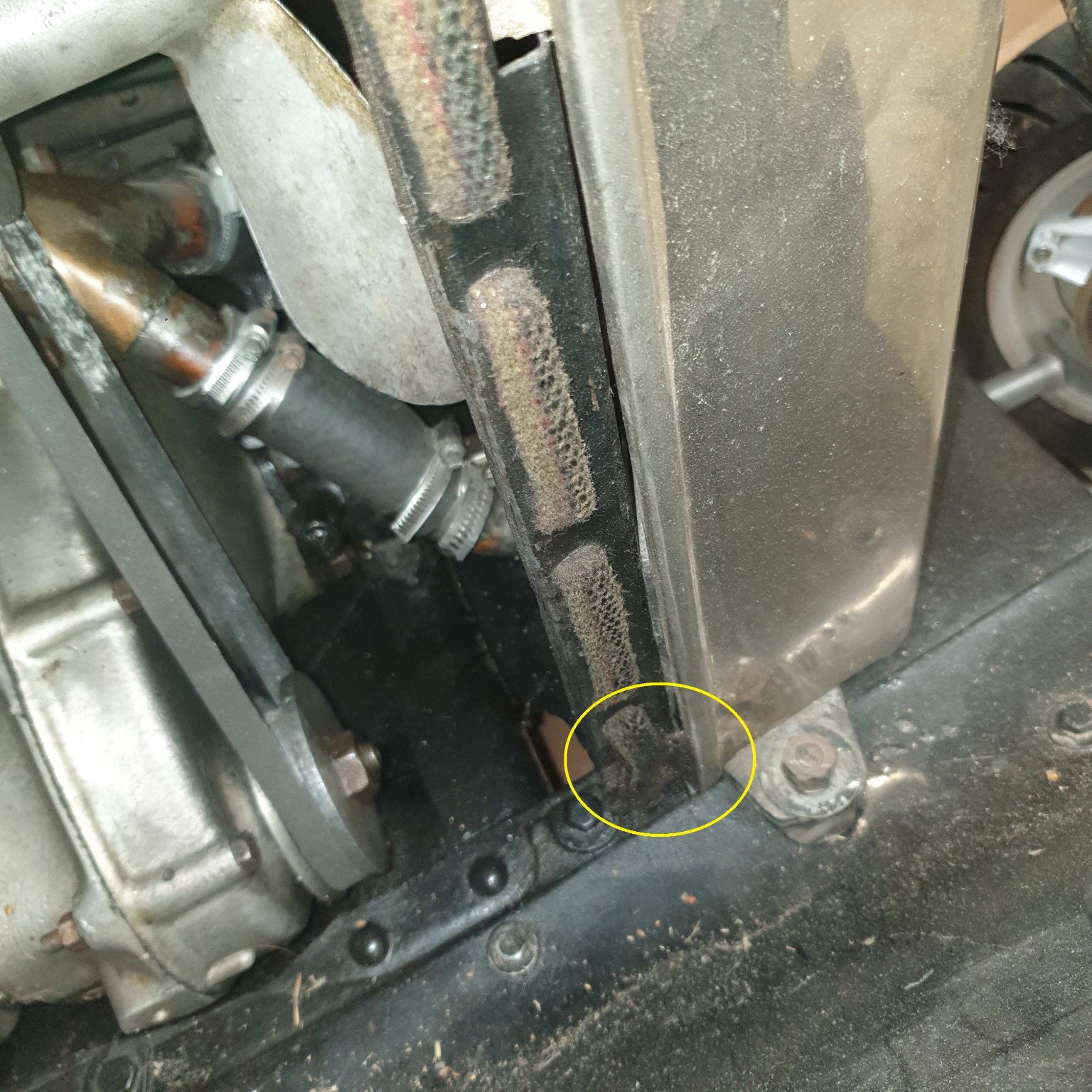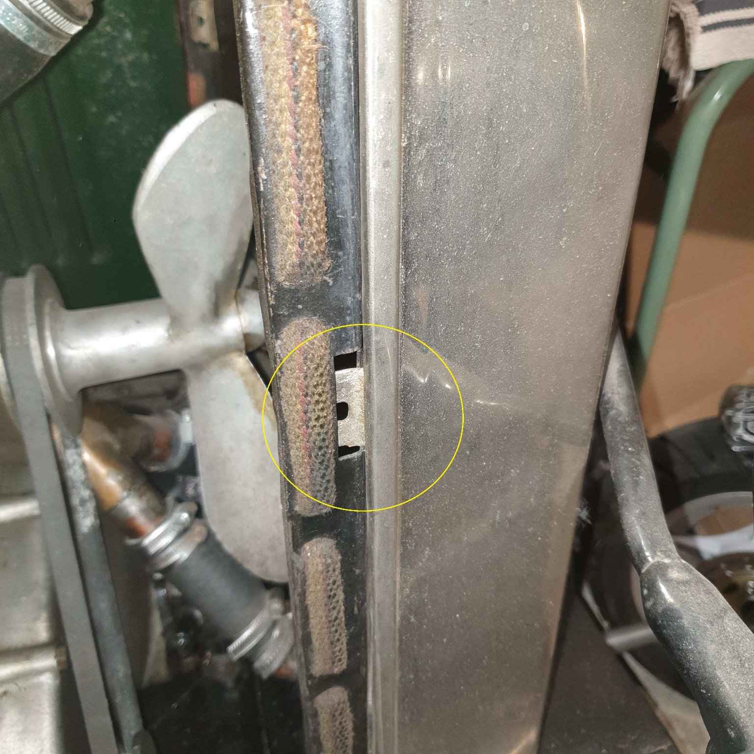Ma calandre ne comporte pas de tresse entre elle et le radiateur. Elle est fixée par des pattes se glissant dans des ouies du radiateur (voir photos), avec des boulons. Tout simple.